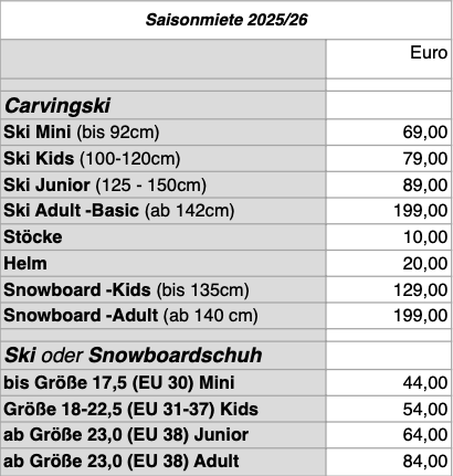 Saisonmietenausgabe bis spätestens 24.12.2025 oder solange der Vorrat reicht.